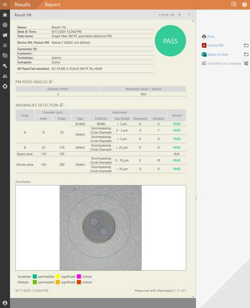 Perform inspections per IEC, Telcordia or custom Pass/Fail criteria.